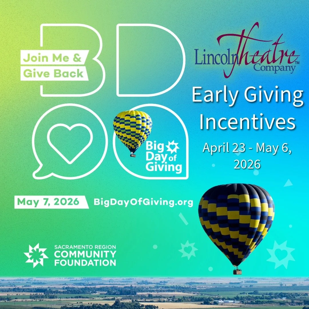 The 2026 Big Day of Giving takes place on Thursday, May 7, 2026, with early giving open April 23–May 6. Lincoln Theatre Company (LTC) is offering special incentives for donations made during this early period.